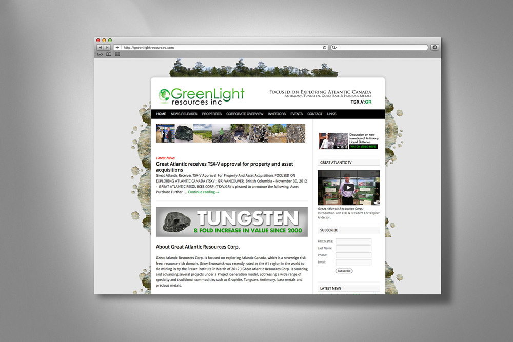 Custom designed wordpress site for Greenlight Resources Inc.
